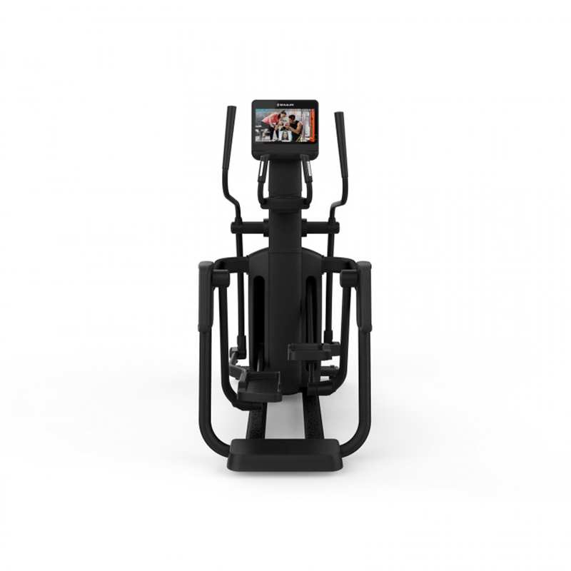 仪表显示:时间, 距离(公里或英里), 卡路里, 阻力等级, 速度, RPM, 心率, 瓦特值。 会员登入标、WIFI标、蓝牙标、USB指示标、耳机孔指示标