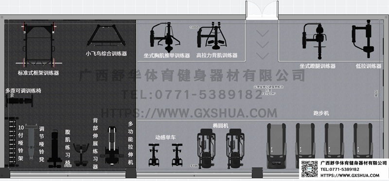 主要配置推胸、高拉力背肌、蹬腿、低拉训练器、多功能拉伸机,性价比高,可满足胸部、腿部、背部、手臂等全身肌肉的训练,通过调整不同的位置和角度,可以实现对不同肌肉群的针对性训练。