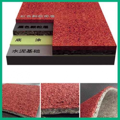 透气型塑胶跑道材料是由橡胶黑颗粒为底层,聚氨酯颗粒与塑胶浆为面层铺设组成的高性能塑胶结构。具有使用寿命长、综合性能适中、施工快捷等优点,它最经济、价格最低廉,而且不会有鼓泡现象发生,同时也减少了地基经费的投入。适用于中小学田径场地铺设。透气型塑胶跑道适用于全国各地大中小学、部队、军区、企业等,气候条件在-16度以上的地区,不可使用高寒冰雪地区。