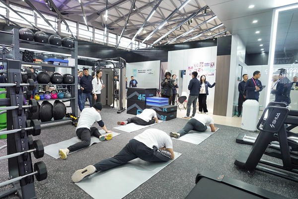 一进入星空xk展位,参观者如踏入真实的健身门店中,经过前台和洽谈区,进入体测区,可以了解自己的身体状况,为接下来的健身计划提供科学依据。根据用户需求的差异性,以“体能-体脂-体型”进阶为参照,星空xk健身会为用户规划出不同的课程类型,针对不同阶段的用户,匹配不同的授课内容及教练。展区还设有专业私教、特色团课以及设备体验区,参展观众可以在此亲身体验健身器材和优质健身课程,咨询健身教练,服务内容包含门店所有私教、小班课及器械使用指导,极具专业性和针对性。
