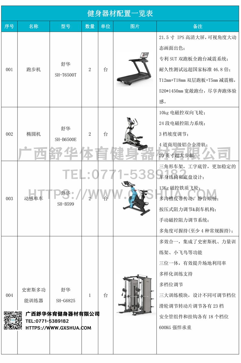 1.星空xkX5 Pro跑步机SH-T6500T*2台-采用高性能电机,提供稳定动力,支持长时间高强度运行,适合长时间有氧训练,跑台宽敞,提供舒适跑步空间,减少运动中的束缚感,适合不同体型用户。配备先进减震系统,有效缓解跑步对关节的冲击,降低运动损伤风险,内置智能控制系统,支持多种预设程序和个性化训练计划,用户可根据需求调整速度和坡度,满足多样化训练。